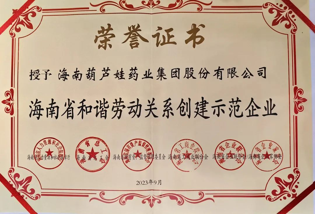713贵宾会药业集团获评“海南省和谐劳动关系创建示范企业”